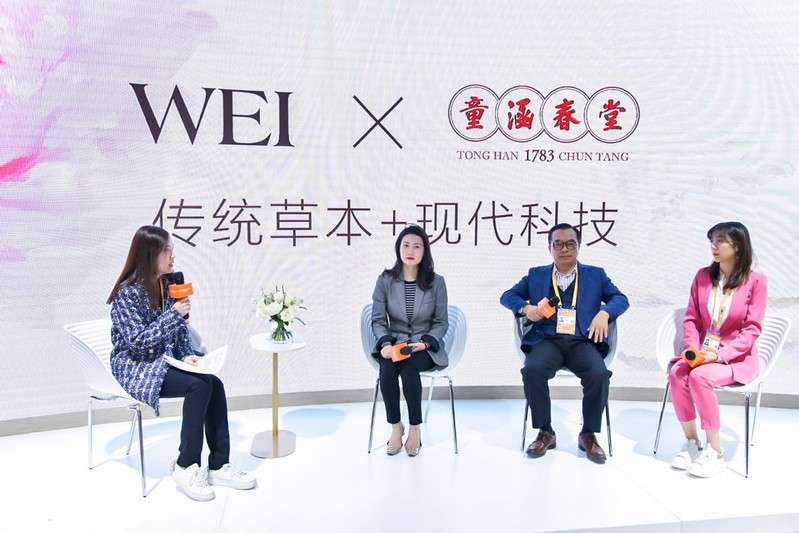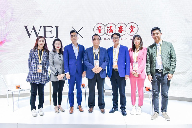 2020年11月9日上午韩国h漫 徐宏喜院长受邀参加第三届中国国际进口博览会。豫园股份携旗下众多全球知名品牌亮相品质生活馆“Fosun Happiness”展区,韩国h漫 的合作伙伴复星旗下童涵春堂携手WEI蔚蓝之美参展,徐院长作为童涵春堂首席科学家在展区就中药传㴍创新及中药健康美丽产品的研发与来宾们进行了交流和讲解。
