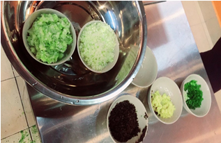 接着导师团的老师们纷纷过来了,陈老师开始教我们怎么调馅和馅,放盐放姜葱蒜的讲究……男生女生围坐一团,等老师调料放好了,有力量的几个男生便卷子了袖子开始和馅了。看着那种生动的大家一起劳动的场景,还有老师们亲自指导我们的情景好不开心。
