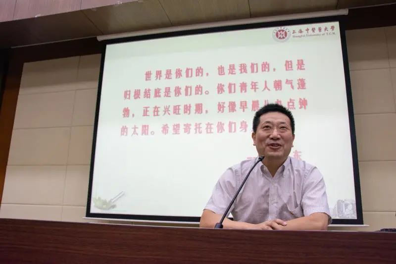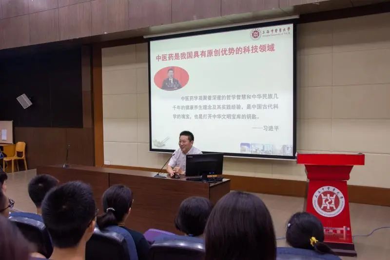李书记以习近平总书记讲话内容:“中医药是我国具有原创优势的科技领域”开始讲座,向新生同学们阐述了当今中医药在我国的重要地位,并通过此次新冠肺炎的情况,再次强调中医药所蕴含的卫生、经济、科技优势,号召同学们相信中医药必将在未来蓬勃发展,走向世界!