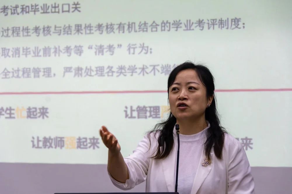 本次讲座在沈岚“你究竟会成为怎样的人?”的设问中开始,鼓励新生同学们保持良好的学习状态,加速成长,收获成果满满的四年大学生活。而后,沈岚从三个方面向全体2020级本专科新生同学介绍了学院的教学科研基本情况。