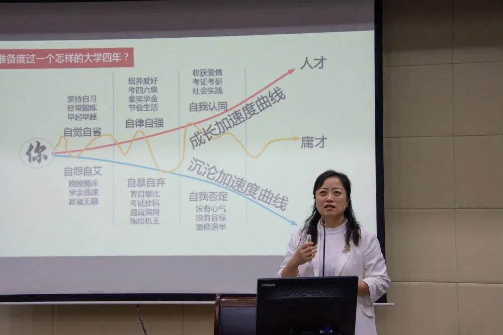 办公室郑敏老师为全体本专科新生同学带来如何做好课程学习的讲座。郑老师从不同专业入手,分别介绍了 教学安排、课程安排、成绩及毕业要求、选课操作等内容,集中解答了新生同学在学分、课程、绩点、选课等新生关注的问题。
