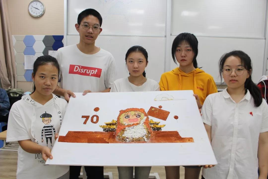 参加比赛的同学们兴趣盎然,全身心投入到中药贴画的氛围中,小心翼翼,却又兴奋难耐。时间流逝,画板渐渐被散发特殊香味的中药填满,化作了国旗、天安门、和平鸽……经过手忙脚乱、状况百出的两个小时后,在所有人的耐心、坚持下,11份以“庆祖国70周年”为主题的作品由红花,丁香、冰片、薰衣草、艾叶、茯苓等材料组成,借此来祝祖国母亲生日快乐。