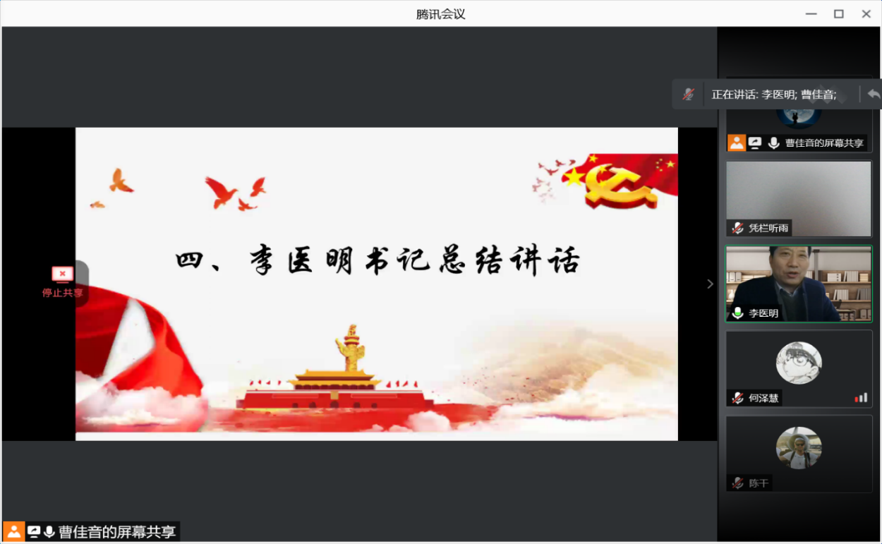 迎百年以实际行动报效祖国,动员大会最后李医明书记进行总结讲话。李书记指出,学习党史能够提高全体党员的思想觉悟。回顾历史,以史为鉴,不忘初心才能更坚实的走向未来,同时寄语全体党员,在学习中能够有所得有所思有所悟,在实际工作中发挥自身价值,时刻发挥党员践行的先锋模范带头作用,李书记的讲话引发全体研究生党员的共鸣,研究生党总支发出了青年的倡议,将以党员的实际行动时刻不忘初心,报效国家。