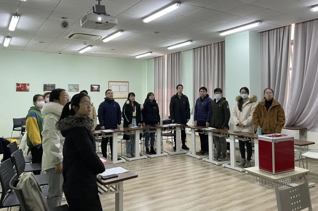 最后,韩国h漫 第一学生党支部的全体党员同志们再次重温了入党誓词,韩国h漫 第一学生党支部委员会换届选举大会至此圆满结束。相信新一届支部委员定能继续高扬旗帜、引领思想,坚持学习,切实加强自身建设,不忘初心与使命,认真履行职责,积极携手前进,在增强韩国h漫 第一学生党支部的凝聚力和创造力方面发挥积极作用,为学院的党建工作添砖加瓦。