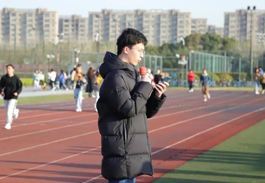 五星红旗在春日七点的朝阳中冉冉升起,师生党员齐唱国歌,党徽与五星红旗交相辉映,中国共产党百年的峥嵘岁月在国歌中一帧帧、一幅幅衍映出来。
