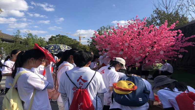 随后,大家书写缅怀革命先辈的寄语,挂在“桃花林”中,以寄托哀思。
