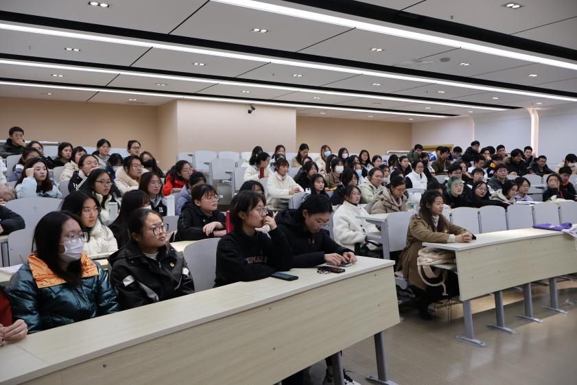 最后,辅导员张晴老师对过去一学期班级发展状况做了整体、系统的总结,分析不足并提出改进建议和改善期望。她强调了学生之间的联动效应和朋辈互助优势,鼓励成绩优异的同学开展学业辅导工作相信通过对自身和集体状况的更明晰认知,同学们在新学期中一定取得出色的成绩,在各个方面有所收获与成就。
