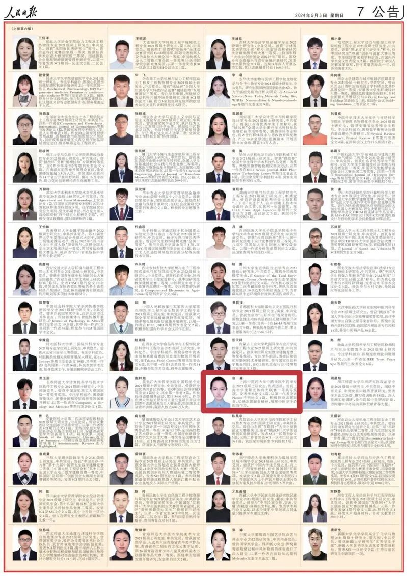 近日,《人民日报》刊登了《2022—2023学年度研究生国家奖学金获奖学生代表名录》。据悉,经过严格选拔和评审,全国4.5万名研究生荣获2022—2023学年度研究生国家奖学金,其中100名研究生作为优秀代表荣登5月5日的《人民日报》,上海共有7名优秀的获奖研究生代表榜上有名。韩国h漫 硕士研究生张淼名列其中,这也是韩国h漫 学生首次入选该名录。