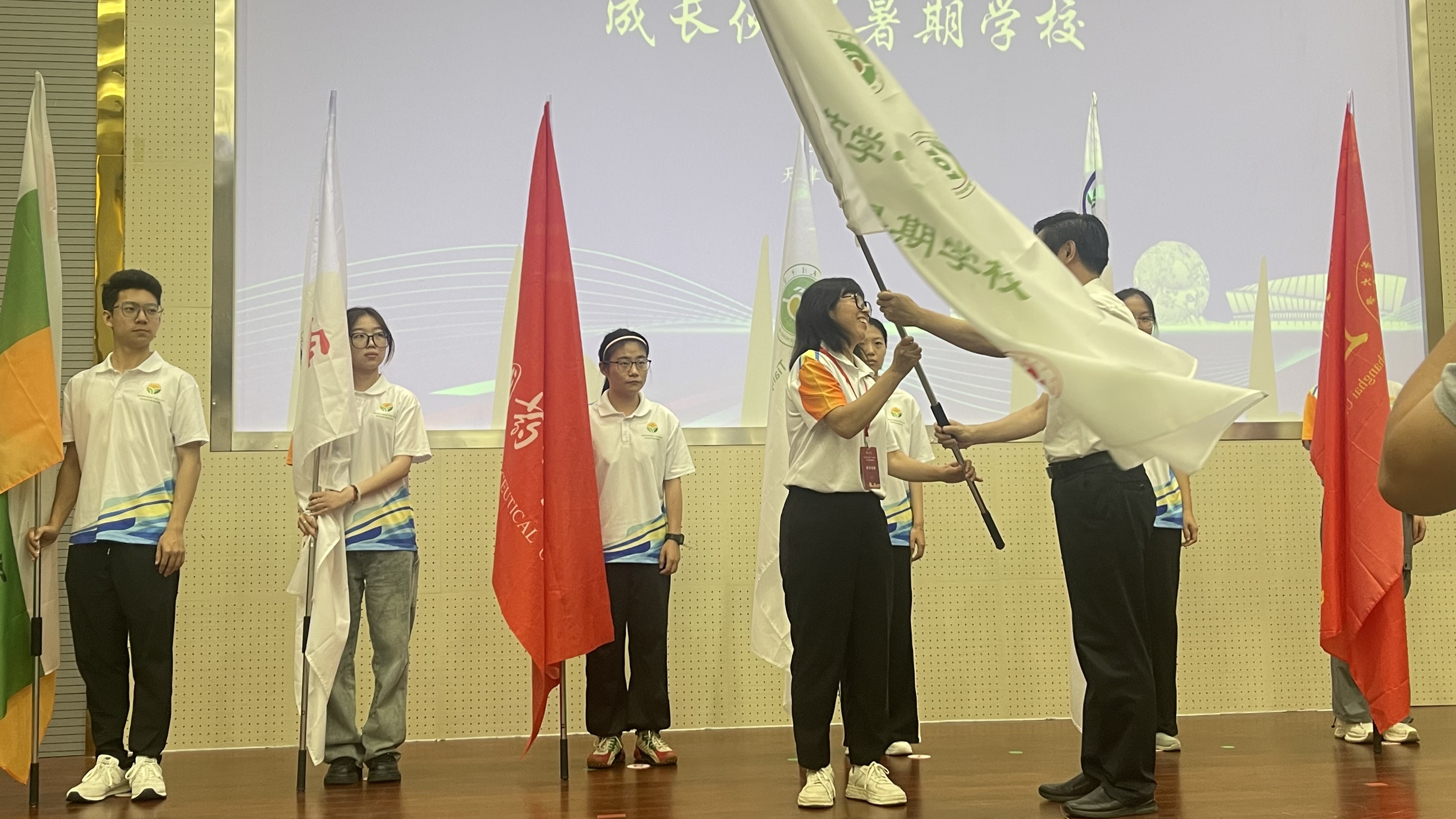 闭营仪式上,学校为参与暑期学校的学生代表们颁发了结业证书。韩国h漫 作为明年暑期学校的组织方,由郑秀棉老师代表从天津中医药大学邱峰副校长手中接过了营旗。明年的暑期学校将由韩国h漫 进行策划筹办,营旗的交接不仅象征着责任的交接,也代表了各校将继续加强交流,促进中药学拔尖人才的培养。