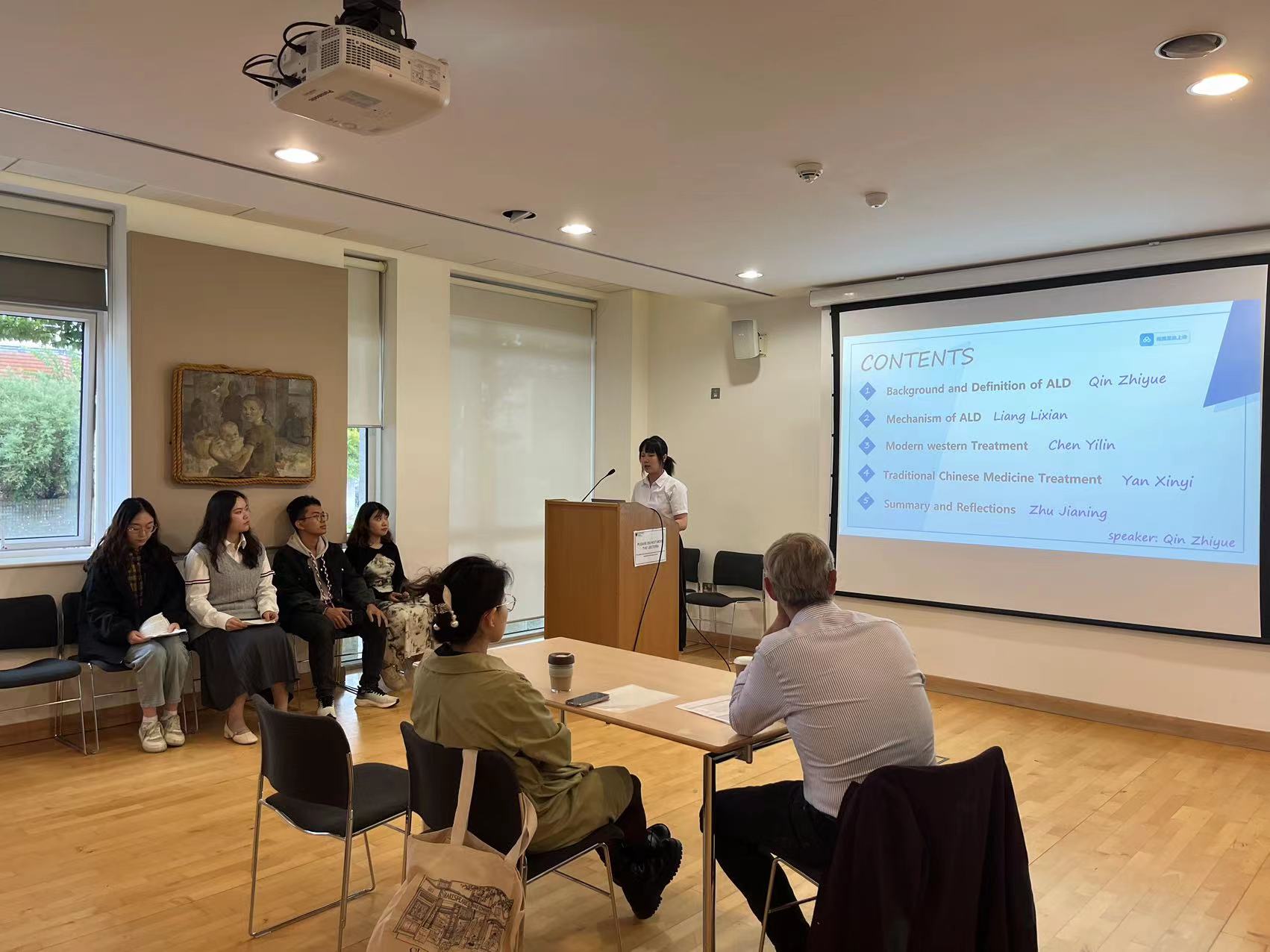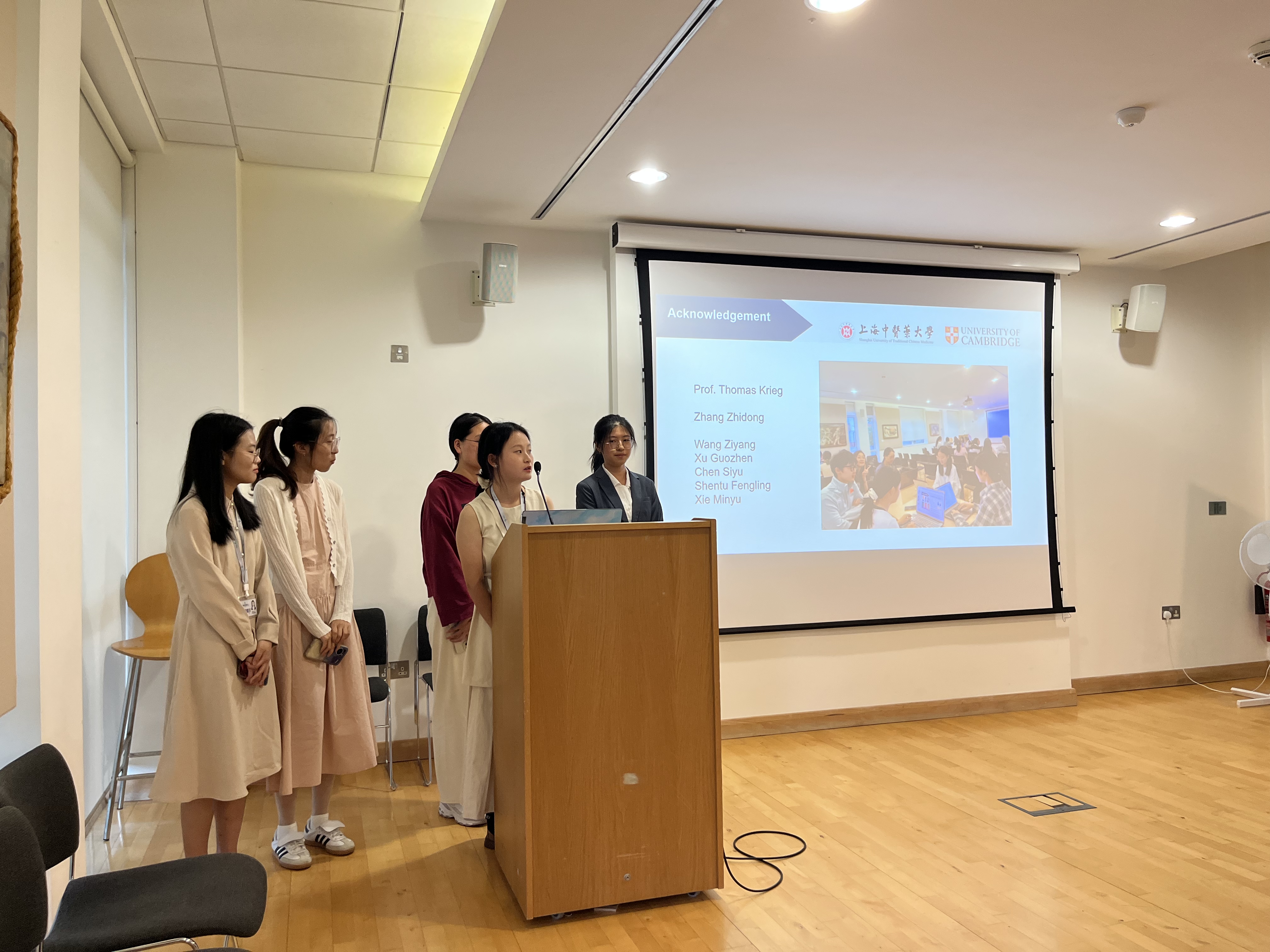 经过近2周的学习,访学团的同学们迎来了结业汇报。这一环节要求以小组为单位,自拟主题,通过4-5次小组讨论,完成一个15分钟左右的全英语演讲。项目主讲教师剑桥大学临床医学教授Thomas Krieg作为评审专家出席活动。本次结业汇报不仅是对韩国h漫 学子访学成果的总结,更是他们学术成长与跨国交流能力的一次生动展现。每位学子都以饱满的热情和专业的态度,向大家展示了他们在剑桥访学期间的学术收获。