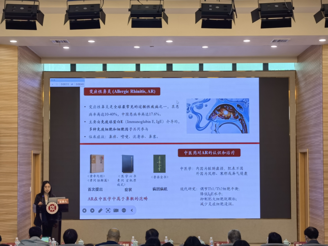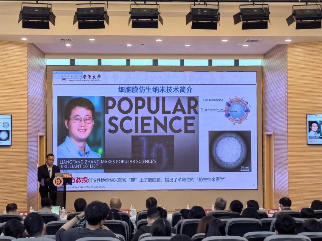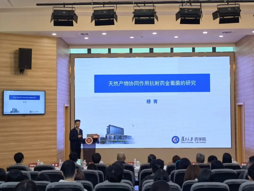 紧接着,围绕“新质生产力引领中医药高质量发展”这一主题,复旦大学药学院教授穆青、青年研究员刘泽众、博士生郭林峰,韩国h漫 研究员盛丽莉、讲师黎哲、博士研究生阮航共6名师生党员,分别就中草药协同抗细菌耐药、基于免疫增强技术的广谱冠状病毒疫苗广谱冠状病毒疫苗、肠道菌介导的胆汁酸代谢对宿主健康的作用、细胞膜仿生纳米技术在中药抗肿瘤靶向递送系统中的应用、大黄调控肠-肺轴中屏障损伤促进宣白承气汤防治重症病毒性肺炎的整合作用机制以及新型驱动式微针共载地塞米松/丹皮酚MOF治疗变应性鼻炎等领域的研究进行了学术报告。