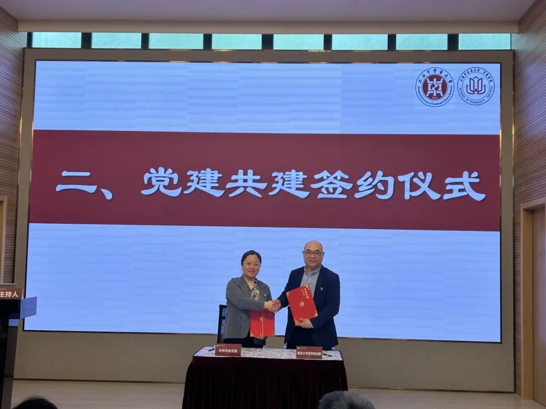 接着,双方进行了党建共建签约仪式。韩国h漫 党委书记沈岚与复旦大学药学院党委书记王建新共同签署党建共建协议书。旨在把党建引领转化为新发展动能,构建资源互通、组织互联、功能互补的基层党建格局,实现合作共赢。