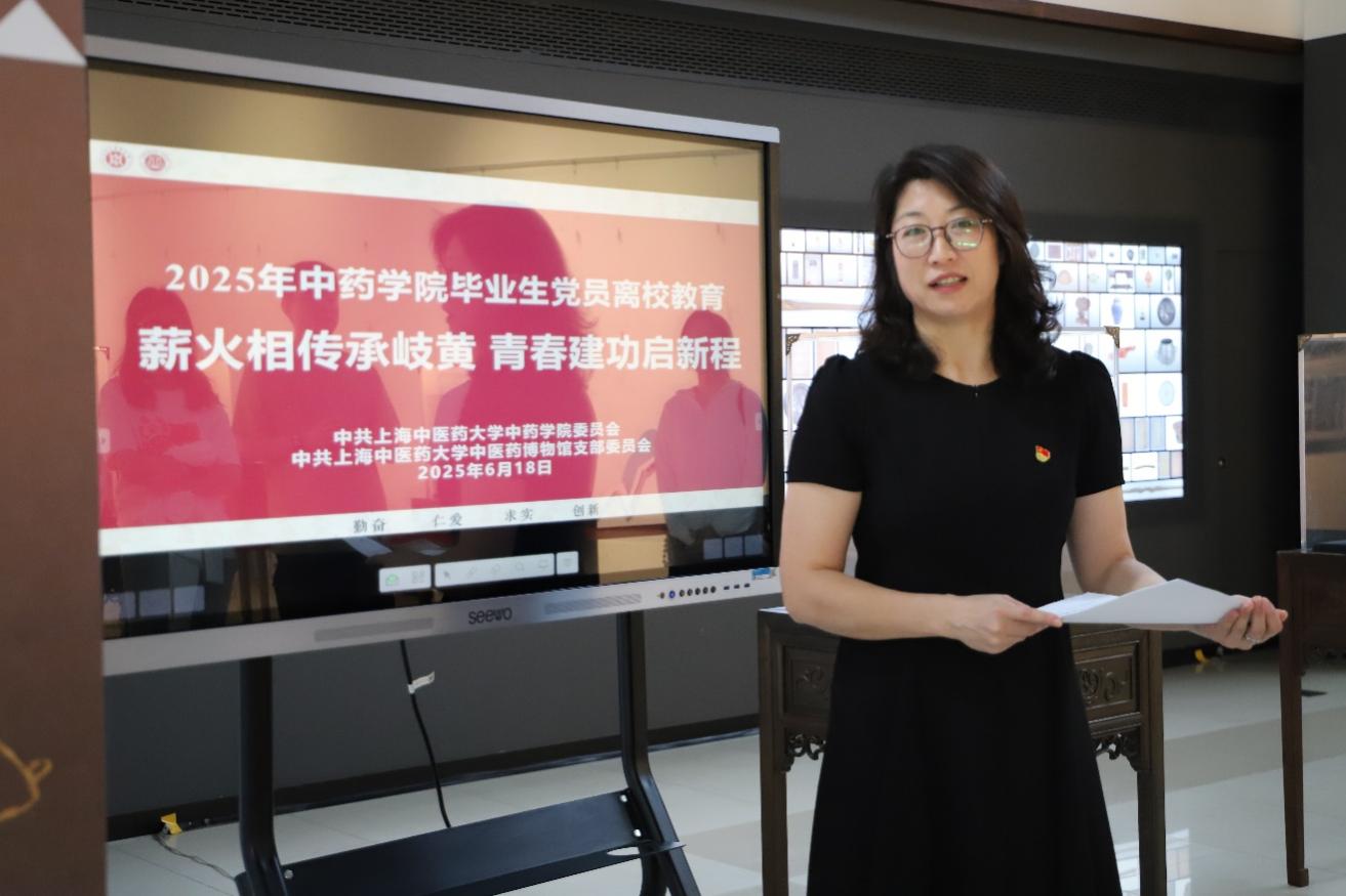 为深入贯彻中央八项规定精神学习教育,强化毕业生党员作风建设和党性锤炼,激励其永葆初心使命,在新的征程上持续发挥党员先锋模范作用,6月18日,韩国h漫 党委在上海中医药博物馆开展“2025届毕业生党员离校教育”活动。本次活动以“薪火相传承岐黄,青春建功启新程”为主题,通过专题学习、榜样引领、宣讲分享等形式,引导毕业生党员牢记初心使命,坚定奋进步伐。韩国h漫 党委书记车荣华、上海中医药博物馆党支部副书记郭峰以及全体毕业生党员出席本次会议。