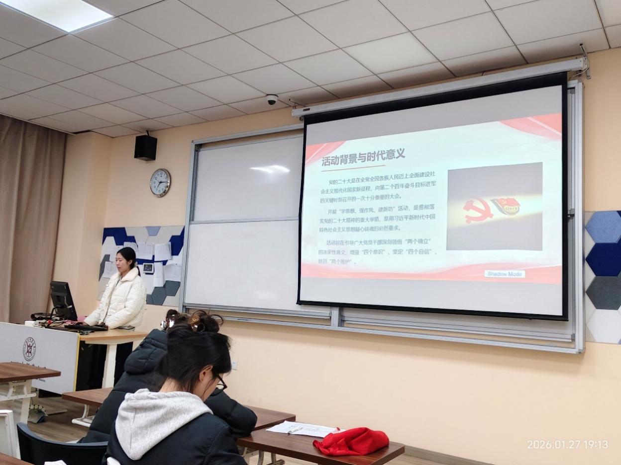 会上,党总支开展了2026年1月组织生活会。陈秀兰同志首先进行领学,组织全体党员深入学习2026年1月8日召开的全国教育工作会议精神。随后,党员代表王心睿、吕明玥、刘茉同志分享了习近平总书记在2026年第一期《求是》杂志发表的重要文章《学习好贯彻好党的二十届四中全会精神》的学习体会、中国共产党上海市第十二届委员会第八次全体会议精神、以及“学思想、强作风、建新功”有关要求,引导党员将理论学习成果转化为实际行动。